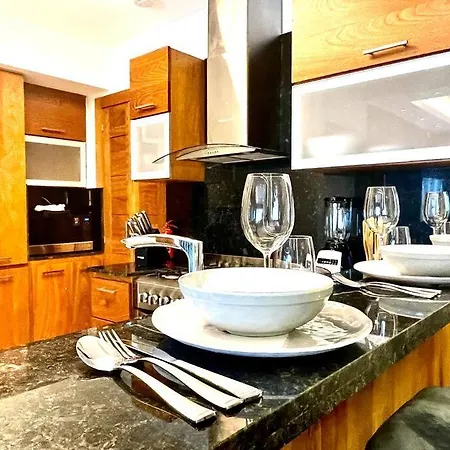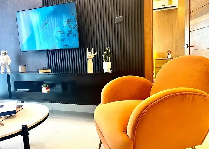 Apartmán Deluxe_Suite_1Bdr_Pool_Gym_Saune nabízí kompletní kuchyni i pokoje s psacím stolem, přístrojem na přípravu kávy a čaje, TV s plochou obrazovkou se satelitními kanály. Ubytování je ve vzdálenosti 6 km od Katedrála Primada de America a asi 7 km od Muzeum pro děti Trampolín.